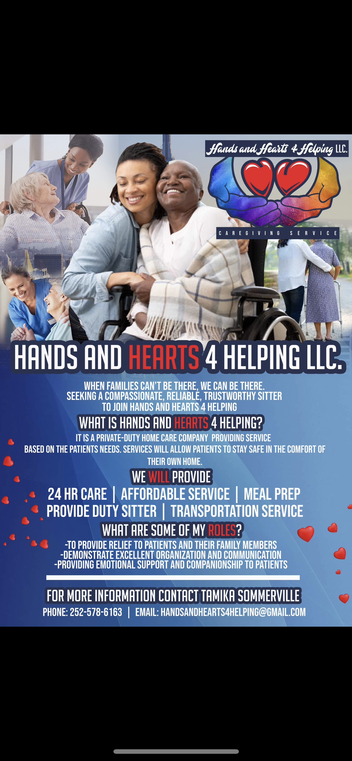 Hands&Hearts4HelpingLLC is dedicated to providing compassionate, reliable, and personalized home care services in Charlotte, North Carolina. Our certified caregivers are committed to enhancing the quality of life for our clients and their families.